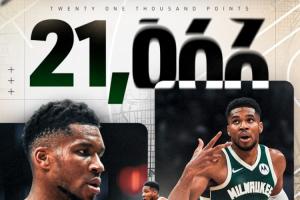 还没31岁呢!字母哥生涯总得分突破21000大关 一数据排名历史第六