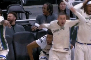 还有彩蛋!字母哥哥垃圾时间送出精彩隔扣 雄鹿替补席兴奋