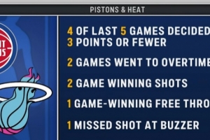 激烈!热火VS活塞过去五场四次分差3分以内 两次绝杀一次罚球绝杀