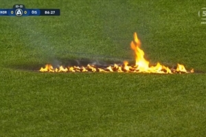 主队降级!瑞典北雪平球迷比赛时向球场投掷烟花,导致草坪着火