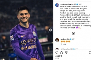 津门虎外援萨尔瓦多社媒:团结一心拼到最后,为球队氛围感到自豪