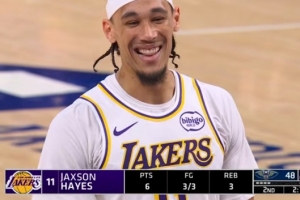 轻松愉快!海斯拼下前场篮板 补篮打进不过加罚不中