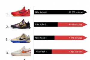 11月NBA球鞋上脚时间TOP10!科比霸榜前3 布克第4 前10有9款耐克
