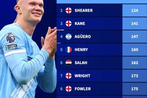 创历史!哈兰德英超百球只用111场,历史最快力压希勒、凯恩等人