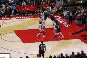 令人羡慕的身体素质!谢顿·夏普中路突击 腾空起飞双手炸扣!