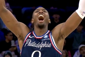 打疯了!马克西抢断后双手轻松暴扣砍下单节第18分 76人领先26分