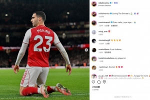传射建功!梅里诺社媒晒庆祝照:我爱酋长球场的角旗杆