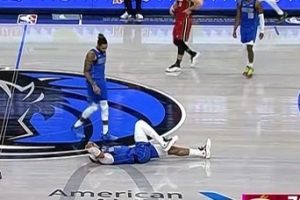 不是吧!加福德补篮过程中受伤 倒地缓了好一会儿走回更衣室