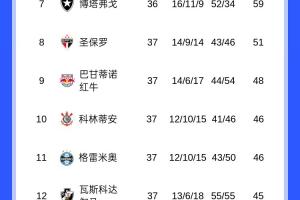 巴甲倒数第二轮,内马尔戴帽帮助桑托斯3-0客胜尤文图德,目前排名巴甲第14位,逃离降级区。