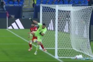 太倒霉了!巴林门将扑救后不慎用脚打入乌龙,此后还被抬出场伤退