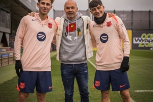 回家看看!伊涅斯塔造访巴萨训练基地,和佩德里、费尔明亲切交流