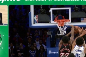 关键判罚!梅尔顿上篮不中球出界判给76人 勇士挑战成功