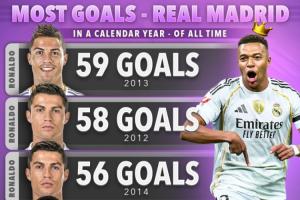 还剩4场!姆巴佩俱乐部年度55球升皇马历史第4,据C罗纪录还差4球