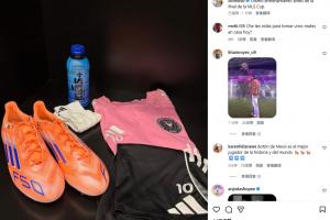 梅西晒出了自己简约的一套训练装备,其中包括F50球鞋、一双短筒袜、一套球衣以及梅西个人品牌的电解质水。