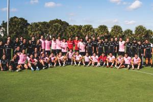 今日迈阿密国际晒出了全队在训练后的大合照,梅西在图中左侧,布斯克茨和阿尔巴C位。这场比赛也将是布斯克茨和阿尔巴的生涯谢幕战。