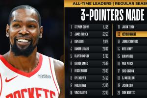 一战双里程碑!除了31000分外 杜兰特三分命中数独享历史第12!