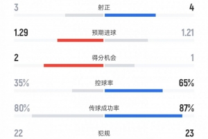 迈阿密vs温哥华数据:射门8比10、射正3比4、控球率35%比65%
