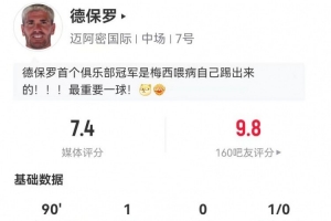 体育资讯12月7日讯 迈阿密国际赢得了总冠军,德保罗本场数据如下: