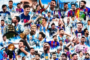 南美足联官方更新社媒动态,晒出梅西球员生涯至今的夺冠海报,对他表示祝贺。