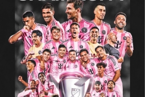 迈阿密国际官方社媒晒出夺冠海报,梅西占据C位,配文:“奖杯是我们的了,2025年美职联冠军!”