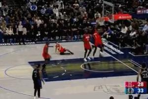 恐怖身体!浓眉双手扣篮势在必得 阿门迎面一掌扇飞到计时器上