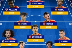前锋:尼科·威廉姆斯(毕尔巴鄂竞技)、奥亚萨瓦尔(皇家社会)、亚马尔(巴萨)