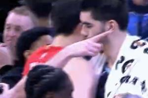今天在场上纠缠一整晚!杨瀚森赛后和埃迪拥抱致意 两人合计11犯
