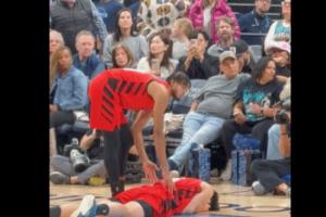 杨瀚森遭遇包夹被埃迪打到面部痛苦倒地 在地上躺了半天没起来