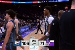 差距悬殊!爵士三节71-106落后雷霆35分 三节得分比雷霆半场少3分