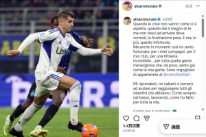 莫拉塔受伤后社媒:挫败感很沉重,但我仍为成为科莫的一员而骄傲