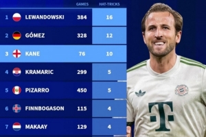 效率恐怖凯恩仅用76场就10次戴帽,21世纪德甲球员排第三!