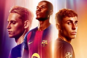 巴萨发布对阵法兰克福海报:拉什福德、德容、费尔明出镜