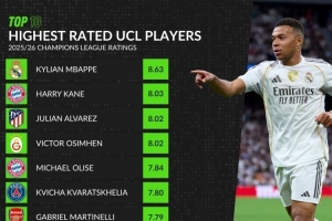 本赛季欧冠场均评分榜:姆巴佩居首,凯恩、小蜘蛛、奥斯梅恩前四