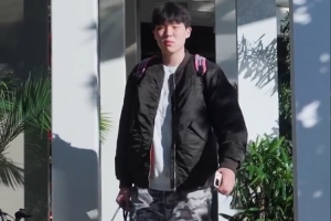 面部挫伤缺阵!杨瀚森入场穿搭与昨日一样 迷彩裤+黑夹克+小粉包