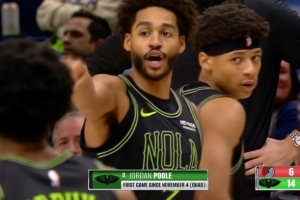 开拓者G2延续相同首发:亨德森/霍勒迪/阿夫迪亚/卡马拉/克林根
